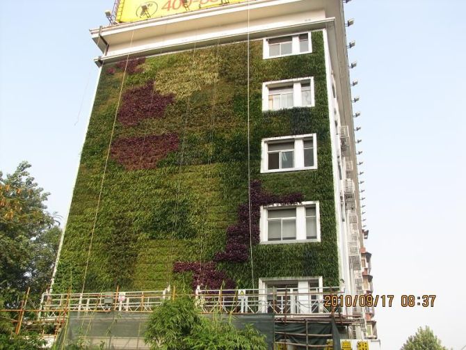 據了解,我市墻面綠化經歷了兩個階段:一是在墻邊栽爬墻虎等攀援植物,讓其自然生長;二是在墻上裝上鋼絲網,引導藤本植物上墻。但適合這樣綠化的植物,只有區區幾種;讓整面墻壁變綠,需要好幾年。現在采用事先在大棚種好植物模塊,屆時在墻面固定鋼網,然后將植物直接拼裝上墻的新技術,綠化周期縮至最短一周,最長一月。適合墻體綠化的植物,已達20余種。明年起,該技術將在我市推廣。(轉自武漢晚報)